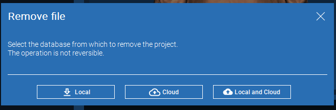 - if you wish to remove a single project from the cloud, click on the Delete icon next to the project. A window will ask you whether you want to remove the project from LOCAL only, from CLOUD only, or from both databases.