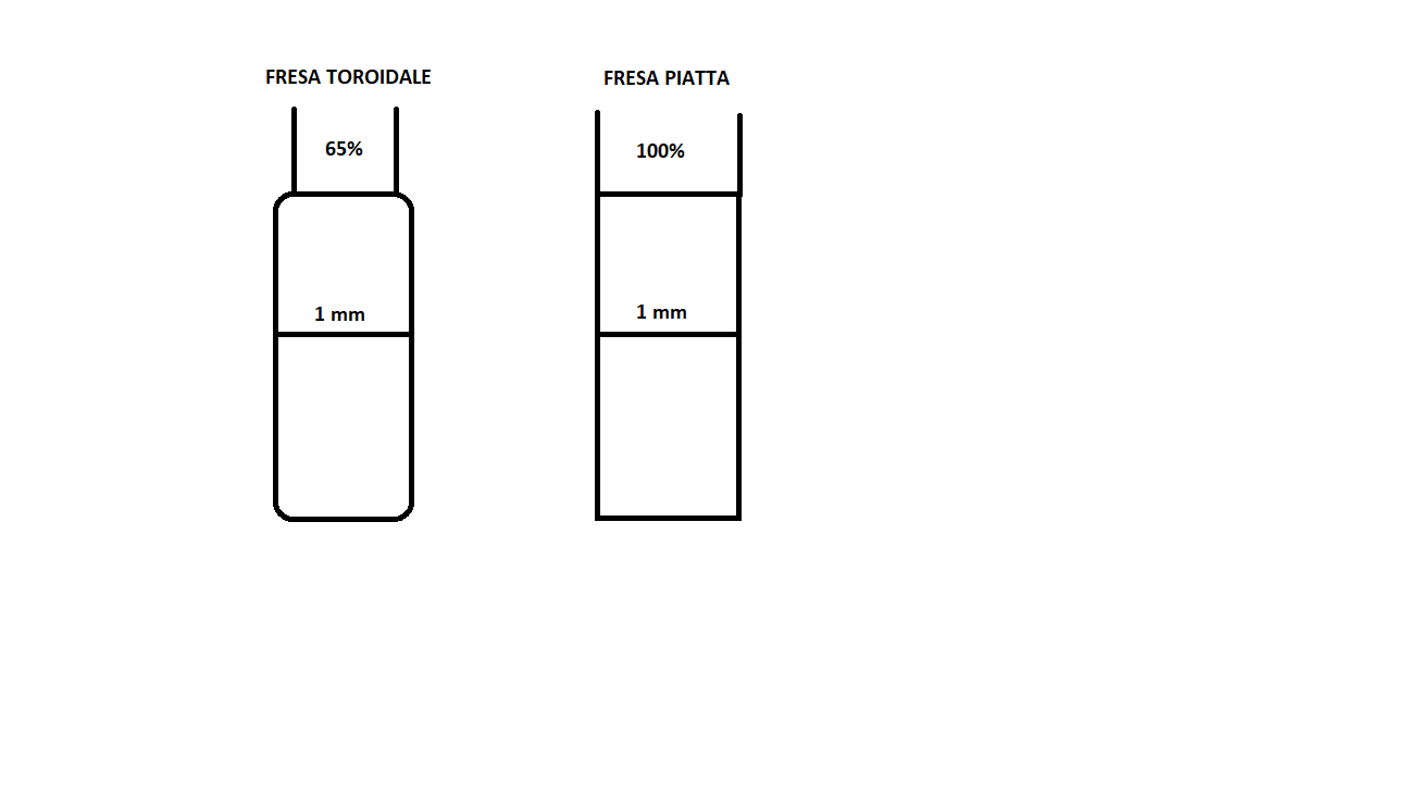 L'opzione della "fresa toroidale" permette di inserire il diametro del utensile utilizzato nel fresaggio e di inserire la "percentuale piatta" della fresa. Quindi per ipotesi se indichiamo un diametro fresa di 1 mm ed inseriamo il valore della percentuale piatta pari al 100% avremo indicato un utensile perfettamente piatto, se invece indichiamo un diametro fresa di 1 mm e la percentuale piatta pari al 80% avremo una fresa di tipo toroidale :