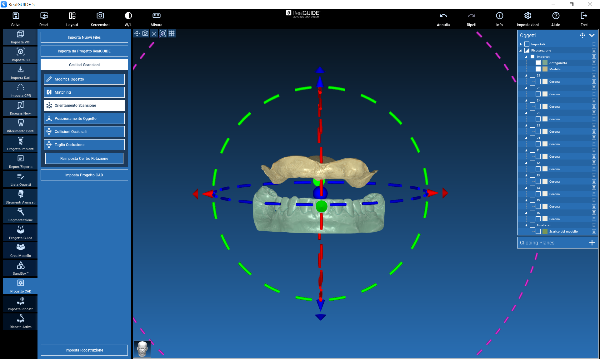 - Scans positioning and realignment in the CAD module;